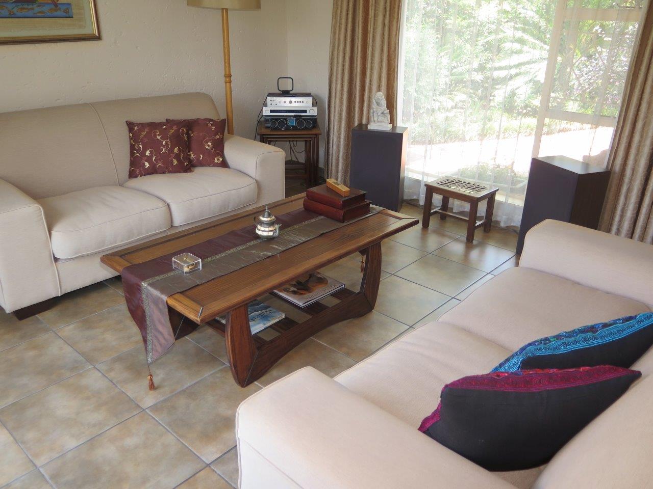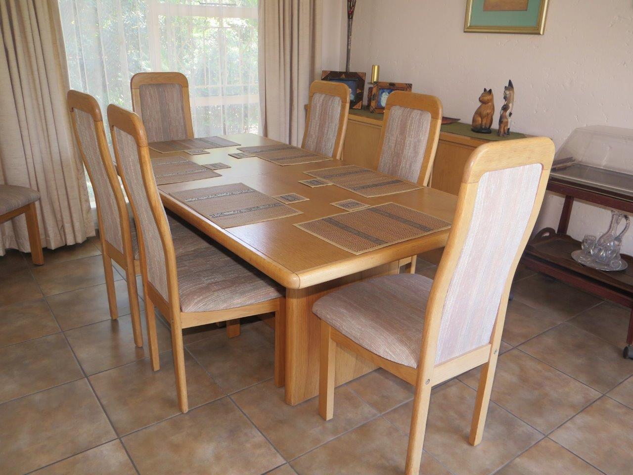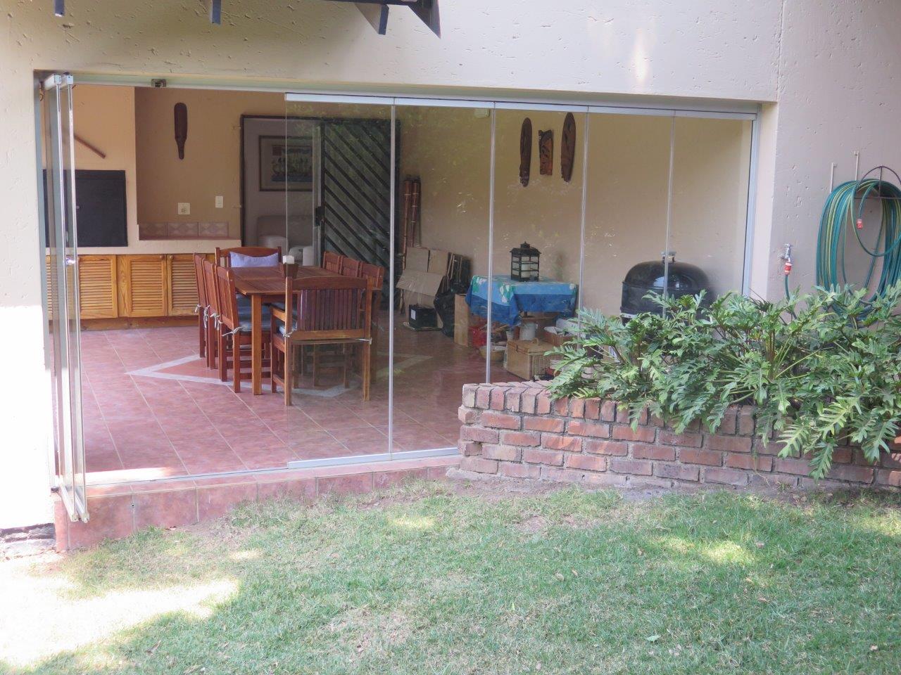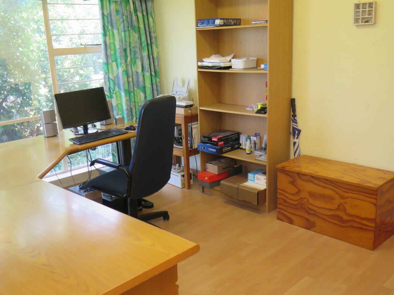 It offers: 4 Bedrooms (Main bedroom has wood laminate flooring and dressing area) * PLUS work from home or 5th Bedroom *3 bathrooms (2 en suite; 2nd bathroom is full)* Formal lounge* Separate dining room* TV room with wood laminate flooring* Open solid oak kitchen with a breakfast bar (2 appliances)* Walk-in pantry * Covered patio enclosed with sliding glass stack doors* Built-in braai on patio* Swimming pool* Large developed treed water-wise garden* Manual irrigation system * Full staff accommodation *Double auto garage and 2 double carports* Alarm system and security gates* Electric fence all round the property* Auto front gate.